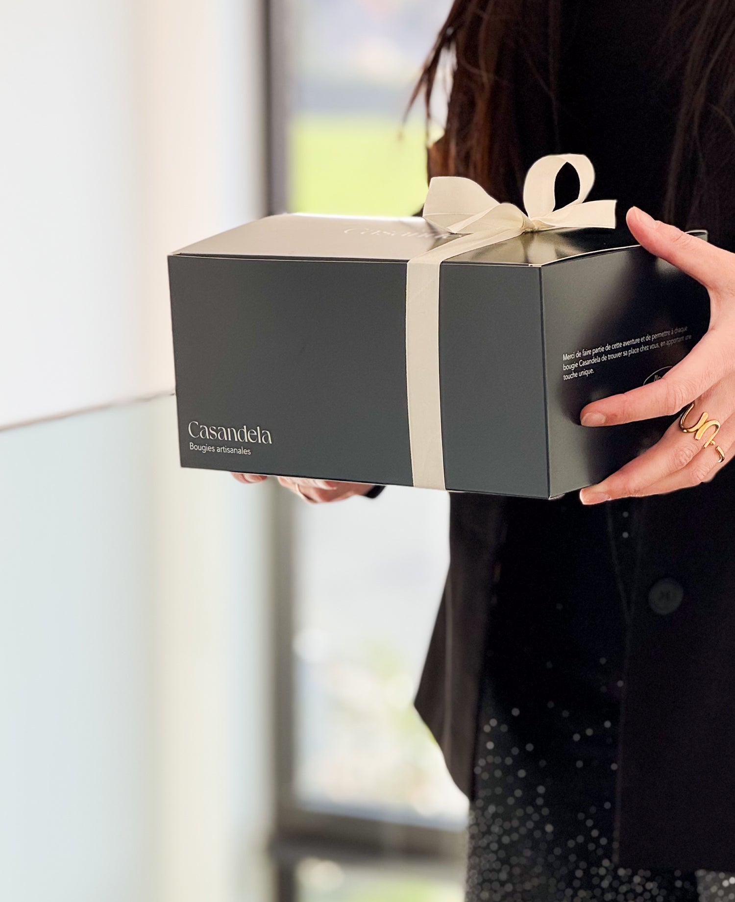 Chaque bougie est présentée dans un emballage soigné et élégant.