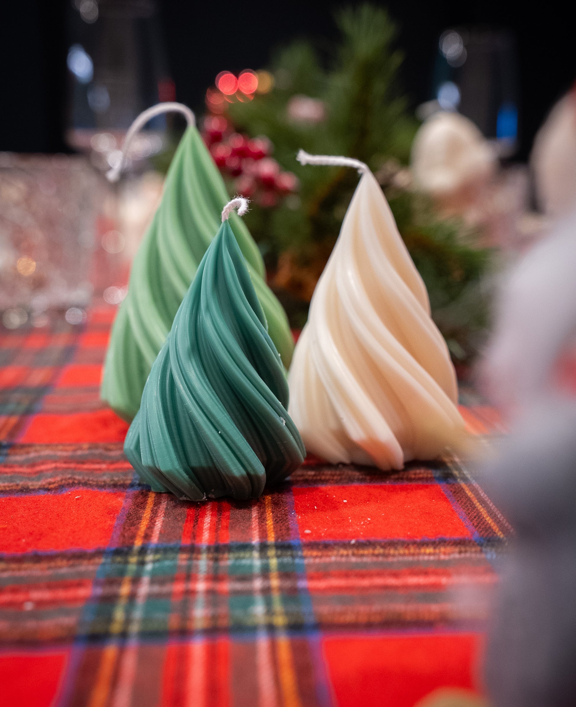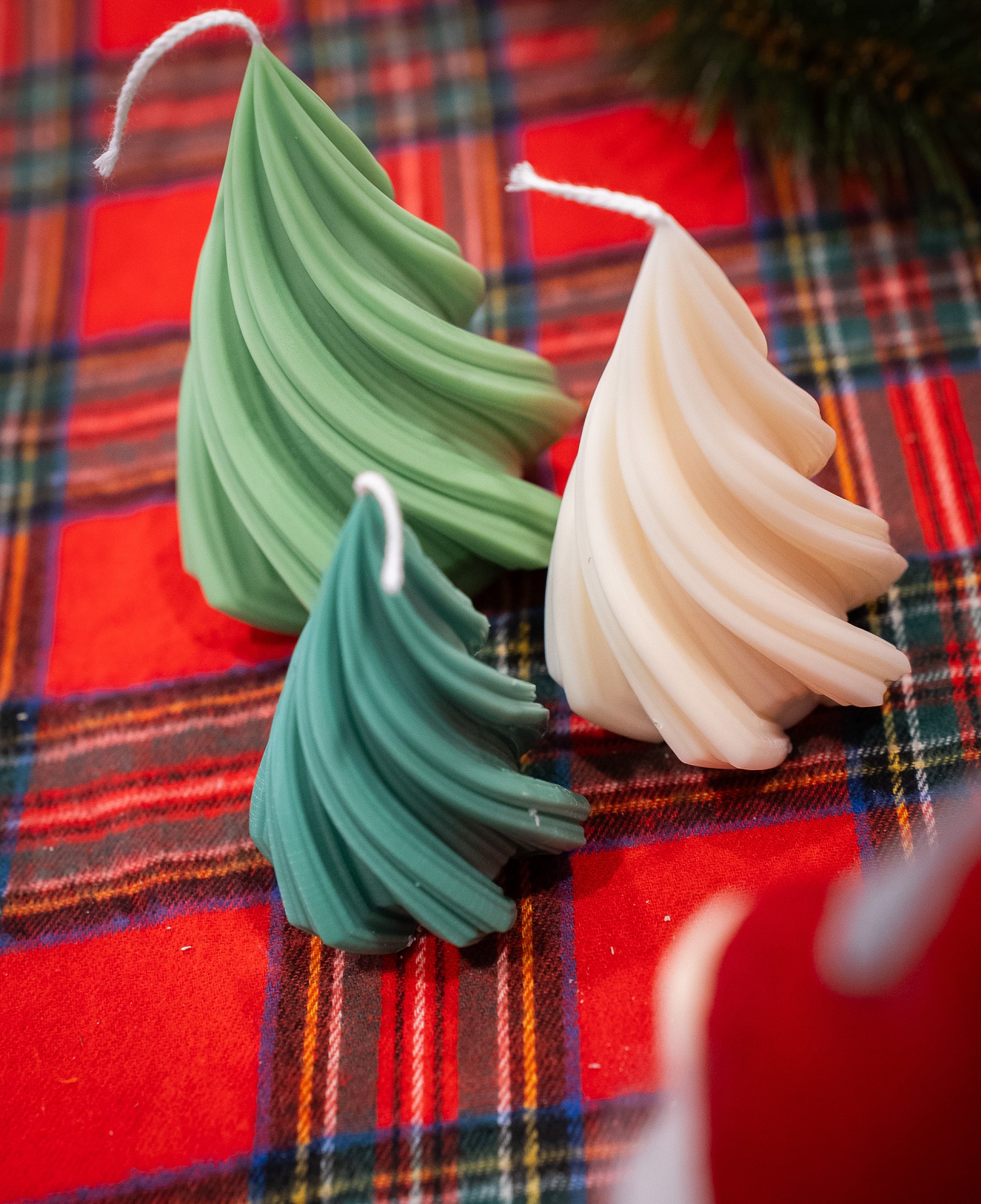 Avec sa forme torsadée et ses lignes fluides, la bougie Sapin Tourbillon revisite le symbole de Noël dans une version moderne et raffinée. Son design sculptural attire la lumière et crée de subtils jeux d’ombres, pour une atmosphère douce et élégante.