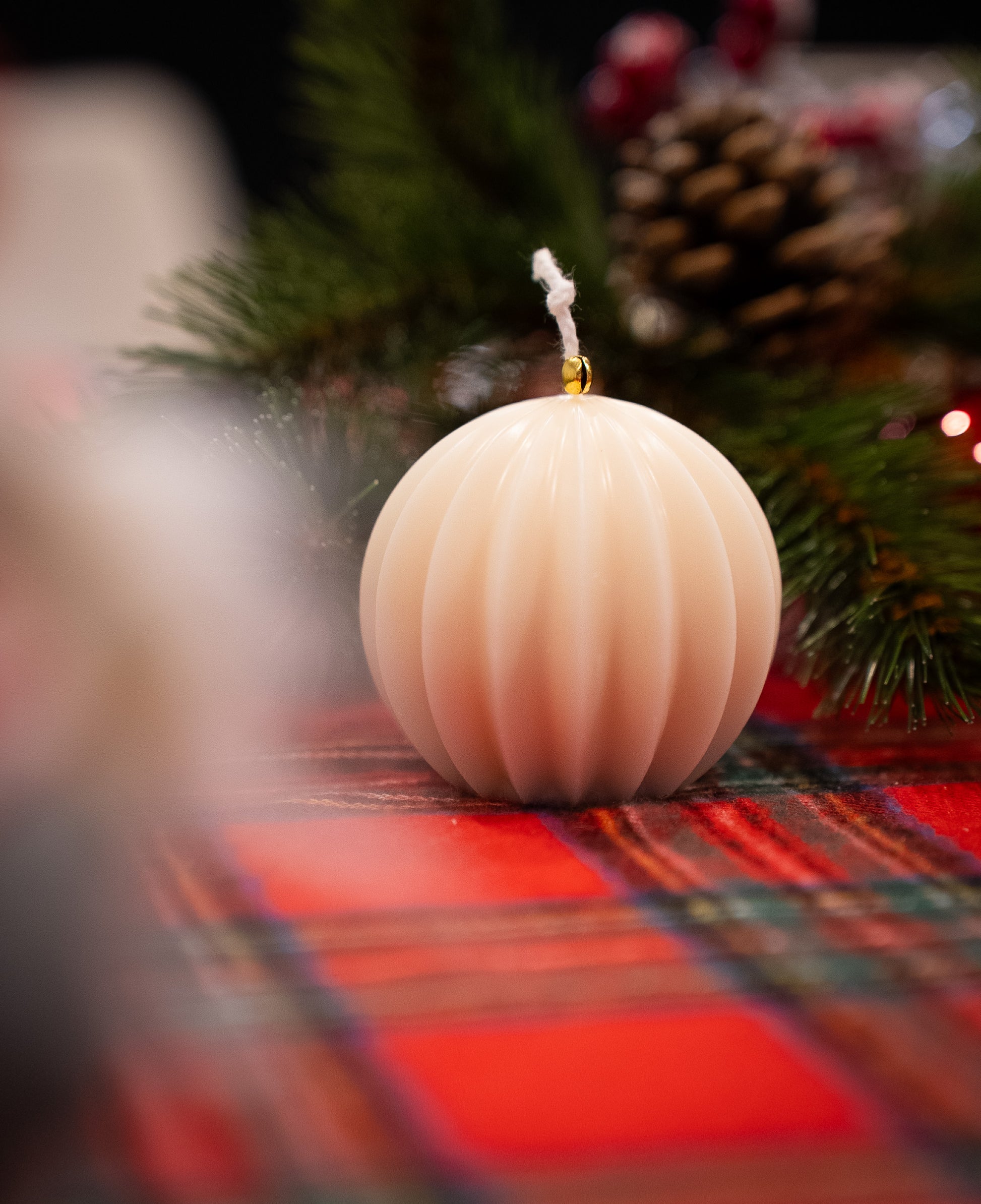 Avec sa silhouette arrondie et ses fines rainures, la bougie Boule de Noël capture tout l’esprit des fêtes dans un design élégant et intemporel. Inspirée des ornements traditionnels du sapin, elle diffuse une atmosphère douce et réconfortante, parfaite pour les soirées d’hiver.