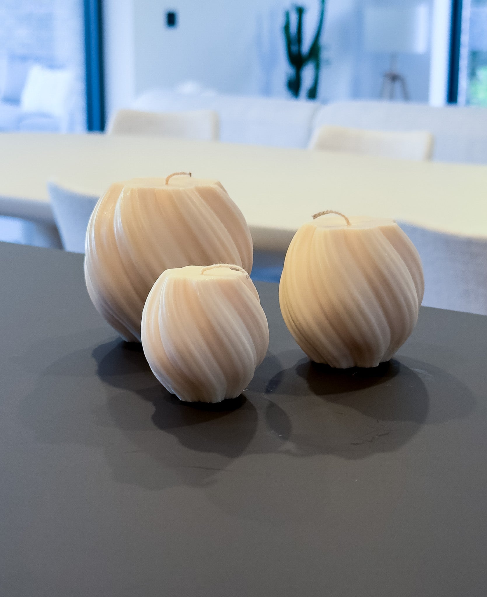 Leur forme arrondie et délicatement torsadée capte la lumière et crée de subtils jeux d’ombre, faisant de chaque bougie une véritable pièce décorative. Conçues pour sublimer vos espaces, elles trouvent naturellement leur place sur une table, une étagère ou en centre de décoration.